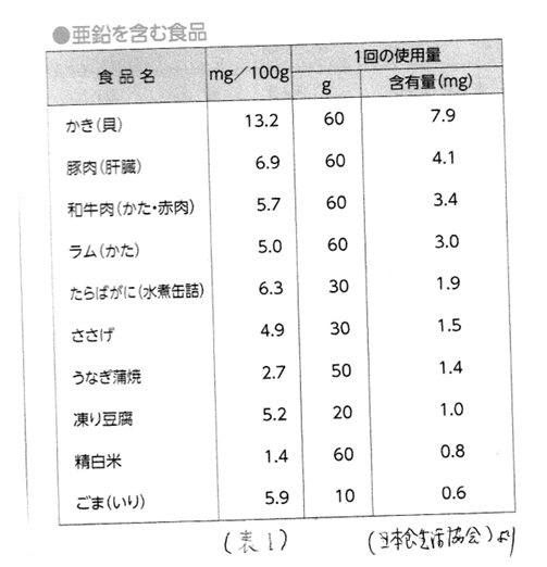 特に、透析患者さんは、亜鉛欠乏を起こしやすいことが確認されています。薬による補充もありますが、食事での摂取が大切です。亜鉛を多く含有する食品一覧 (表1)を参照に、欠乏症を回避しましょう。