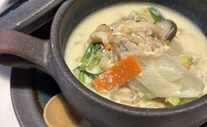 飛鳥鍋は奈良に伝わる郷土料理です。牛乳と豆乳使用で、コクのある味が楽しめます。